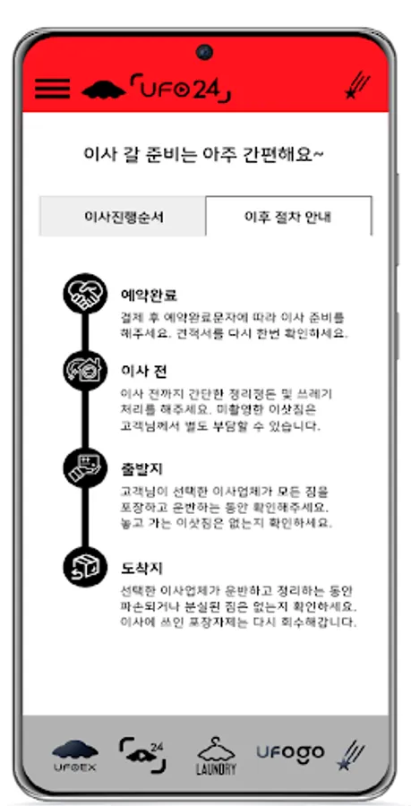 UFO24는 서비스를 이용한 고객님들의 후기를 통해 다음 사람이 서비스를 이용하는데 있어, 여러 견적의 업체를 비교하여 선택할 수 있는 안심하고 후회없는 이사서비스를 선택할 수 있어요!
