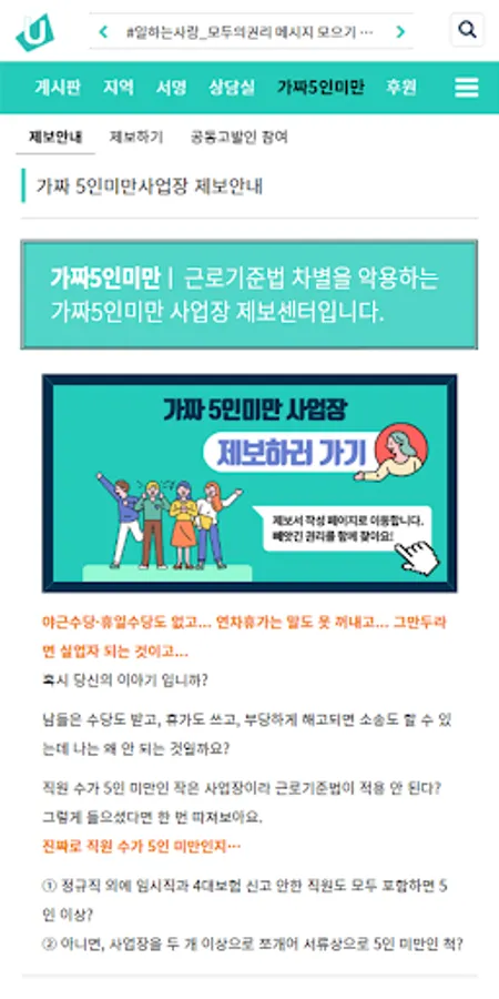 Report Center for businesses with less than 5 fake employees who exploit the discrimination against the Labor Standards Act.