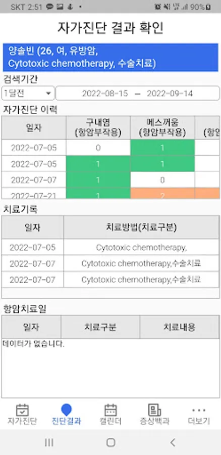 - Symptom summary: You can check the symptom change entered by the patient through an intuitive table.