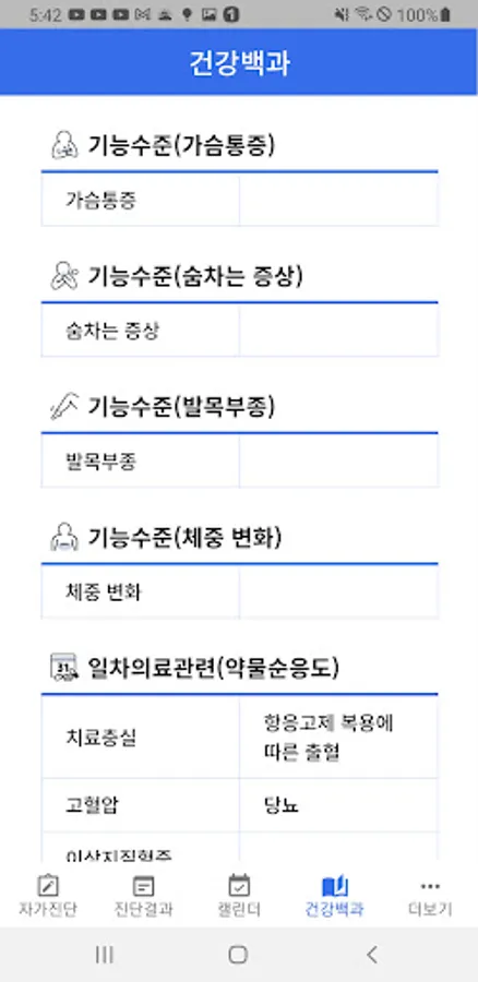 - Self-Question: You can record your current health status through a questionnaire for each symptom or health behavior.