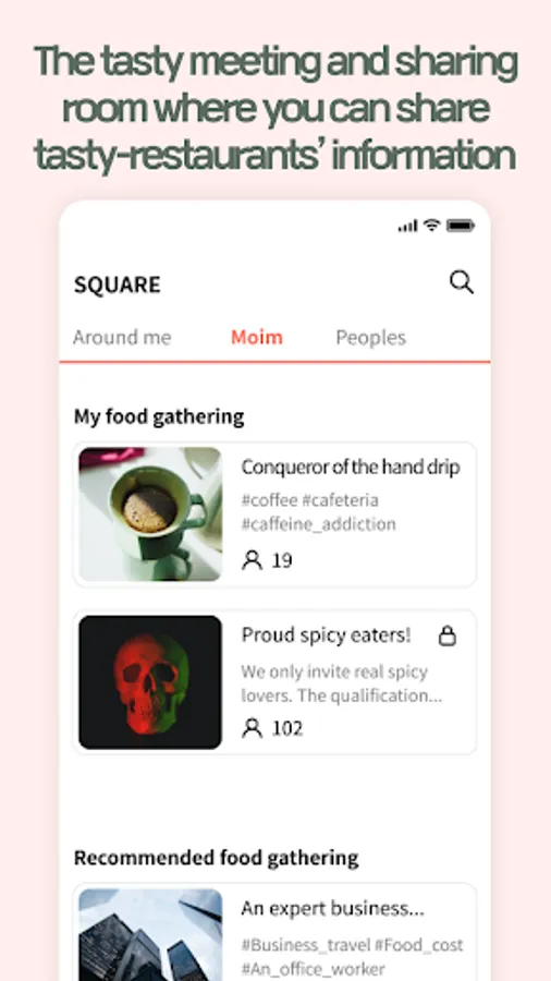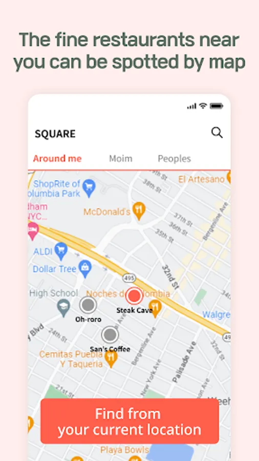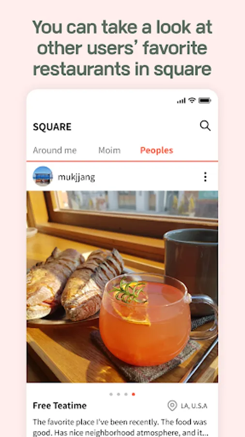- View other users’ hidden-gem restaurants in square (the tasty nearby restaurant, Tasty meeting, persons)