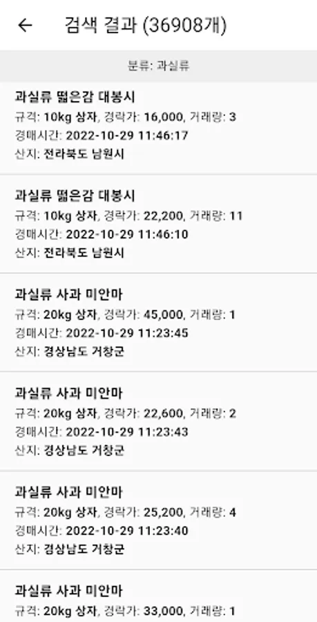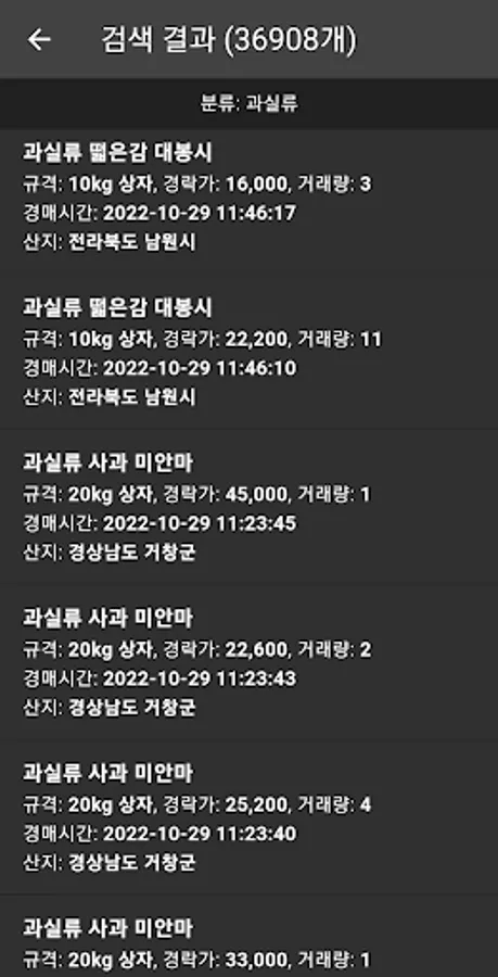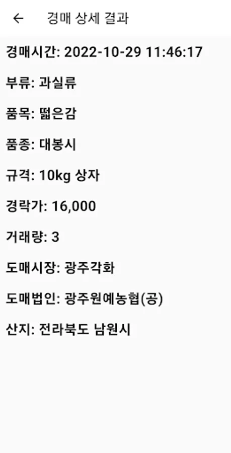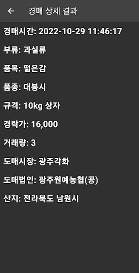 ※ Agricultural products real-time auction app is not affiliated with or represents an organization that provides information.