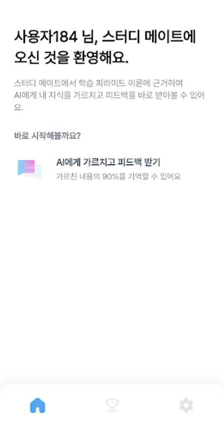 Study Mate is an AI-based learning assistant app. According to the pyramid memory theory, students learn best when they are taught about what they are learning. It is an app that lectures the contents of learning to the app and increases understanding of learning and long-term memory.