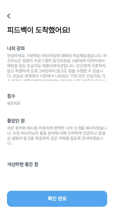 You can record the lecture on a microphone. Study Mate's AI listens to your lectures, analyzes them, and evaluates them. Through an evaluation that comprehensively considers the content, structure, and delivery of the lecture, you can immediately identify the strengths of the lecture and areas for improvement.