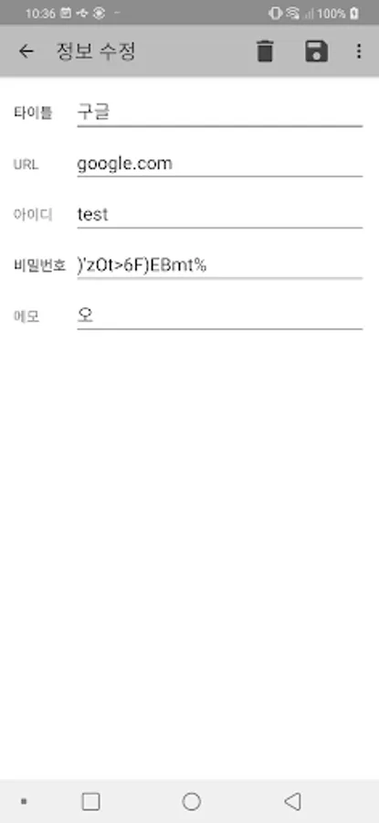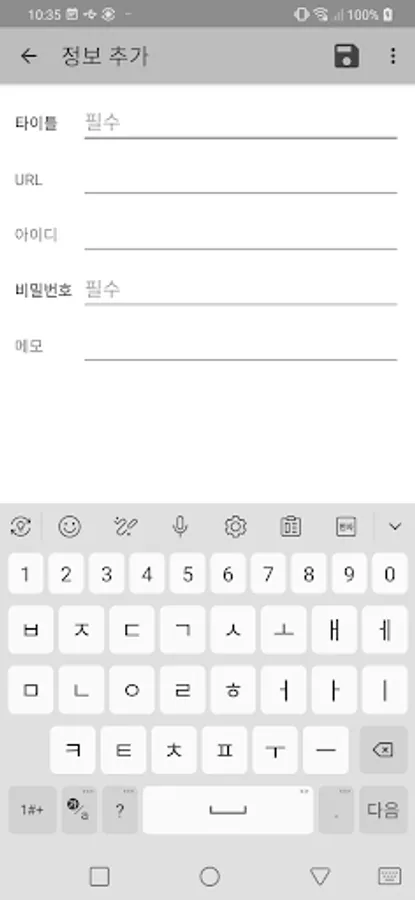 ㅇ Simple data entry (name, address, ID, password, memo (optional))
