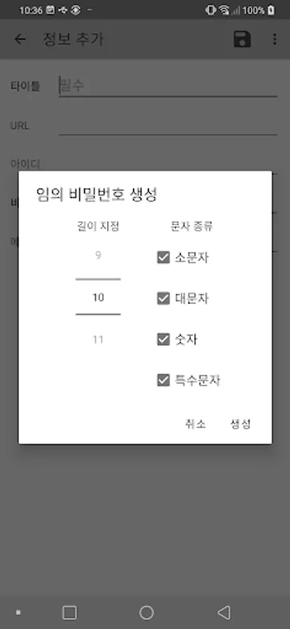 ㅇ Supports password generation (combination of strong/small letters, numbers, special characters)