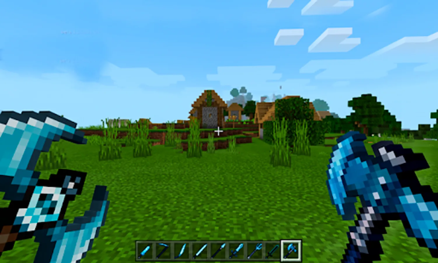 In this mcpe addons we added to minecraft pe new weapons and epic guns to the world, not just swords but many others - axe, battle axe, dagger, hammer, machete, spear and other weapon craft!