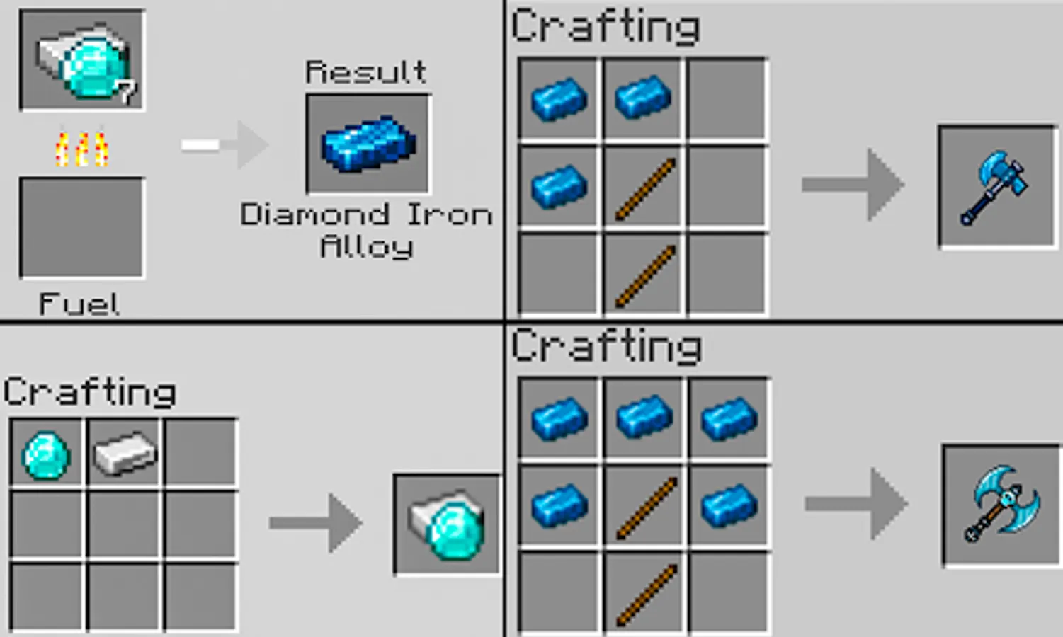 ⛏ To make these weapons and pvp guns, we need a new item to make it. First you put the diamond and the iron together ⚔️