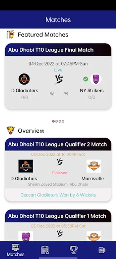Alerts & notifications of live and upcoming matches.
