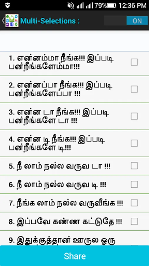 Here is an enthralling App available with instant templates for various feelings over diverse occasions to convey a message in Tamil. There is an ease of share in all social networking apps unfastening the need to ‘type’ them. Get ready to give a nudge in your Tamil expounding to people by mirroring your feelings at that moment.