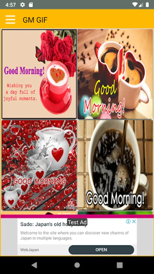 This good morning gif 2022 is a beautiful collection of cheerful gif images, love quotes for whatsapp that will not only spread the positive vibes but also expresses your likeness and care for your loved ones. It also consists of big emojis. Internet is required only to share pictures to social messengers but not required to view GIFs & photos. Select any image as your smartphone wallpaper and save it to your phone gallery. Very efficient user Interface with good controls to move back and front along with home screen displays. Enjoy and convey your beautiful good morning gif, love images to your loved one's with this app...
