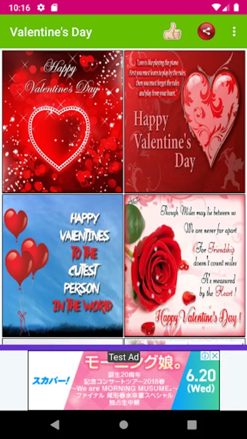 Valentine's Day is a love festival which is celebrated by lovers on every year february 14 in the world. In this festival, lovers share their love and happiness themselves. Discover the nice collection of pictures for Valentines Day Wishes 2021 and Romantic Valentines. Enjoy this love festival by sending the cute love wishes to your loved ones with this software app. This app lets you to set any image as your phone wallpaper or whatsapp profile images or whatsapp status images. Internet is needed to share the valentines pictures to your circle. Enjoy this festival by sending the pictures in this free mobile app with your lover via social messengers like whatsapp, fb, twitter, etc.