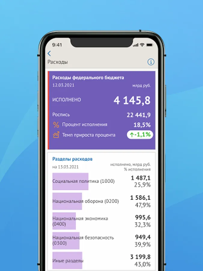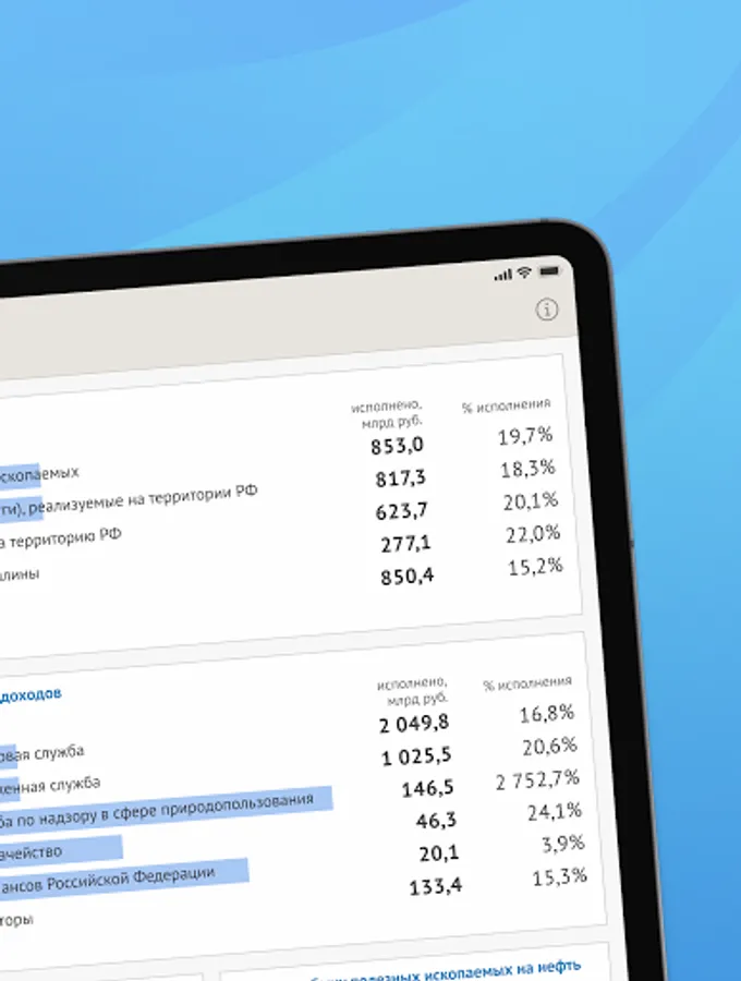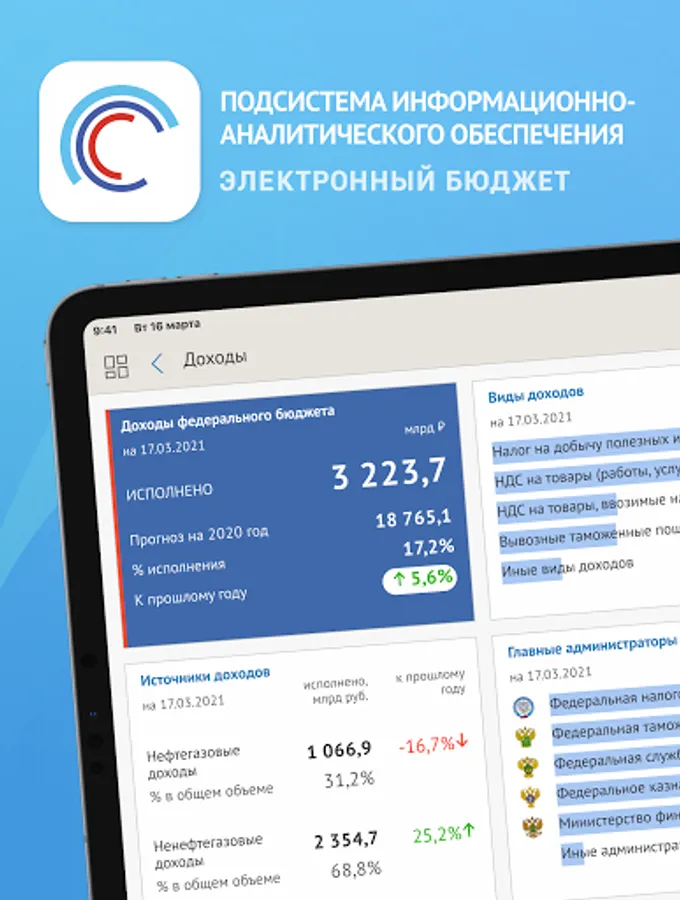 The PIAO mobile application provides registered users with quick access to data marts, dashboards, analytical reports and KPIs of the information and analytical support subsystem of the state integrated public finance management information system “Electronic Budget”.