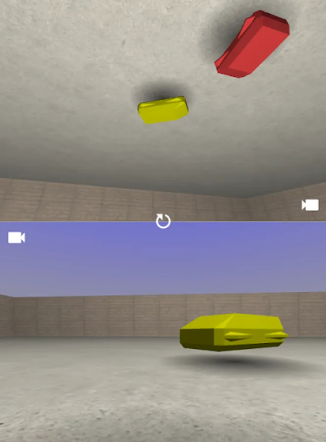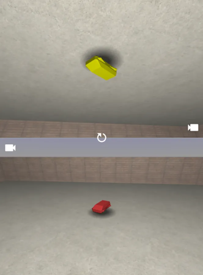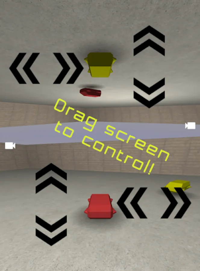 The controls are easy - just hold your device in portrait mode with players at opposite ends. Dragging up/down on the left half of each screen will control your car's acceleration, while dragging left/right on the right half will cause you to turn (see attached screenshot). Each player can also change their camera view using the relevant icon, and the game can be reset (with random starting positions) using the central button.