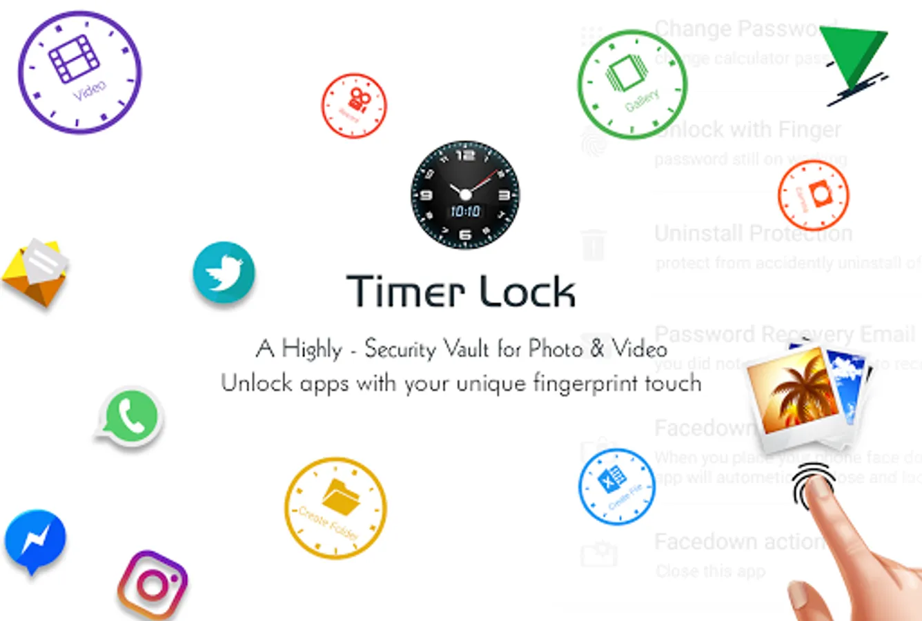 Timer Lock - The Clock Vault : Hide Pictures & App Hider Features:
