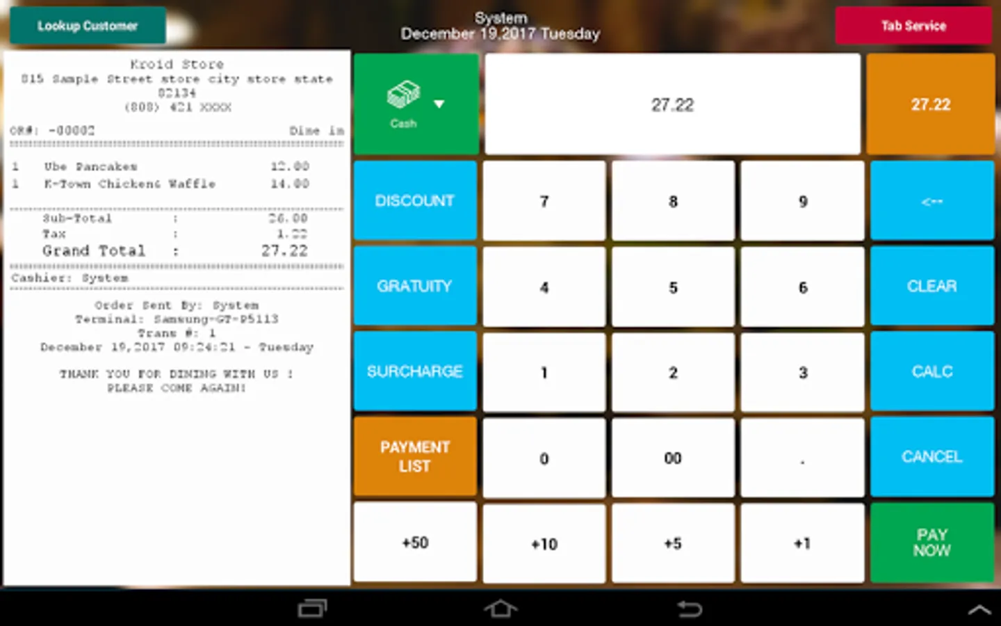 An android mobile POS with dynamic and inclusive interface.