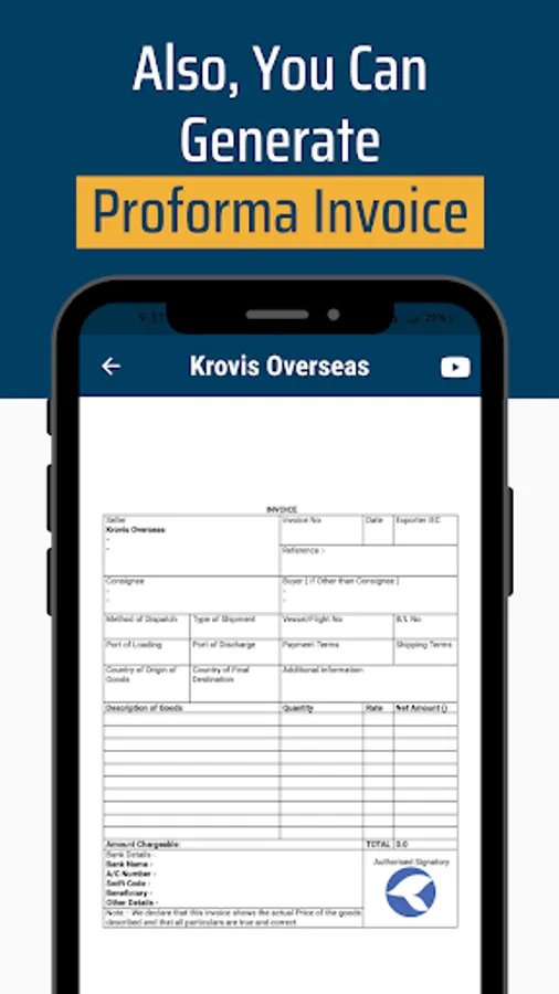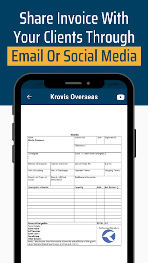 Export Invoice Maker, also known as export billing software for mobile, is an easy and fast Export Invoice Maker App for sending your business customers invoice and billing. Today, every business needs to generate Invoice along with billing.
