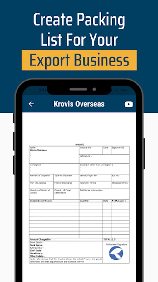 This app designed to make your import export business more productive. You can make unlimited free export invoices and packing list. Generate unlimited export invoices without any subscription fees. This app provides complete solutions for import export business.