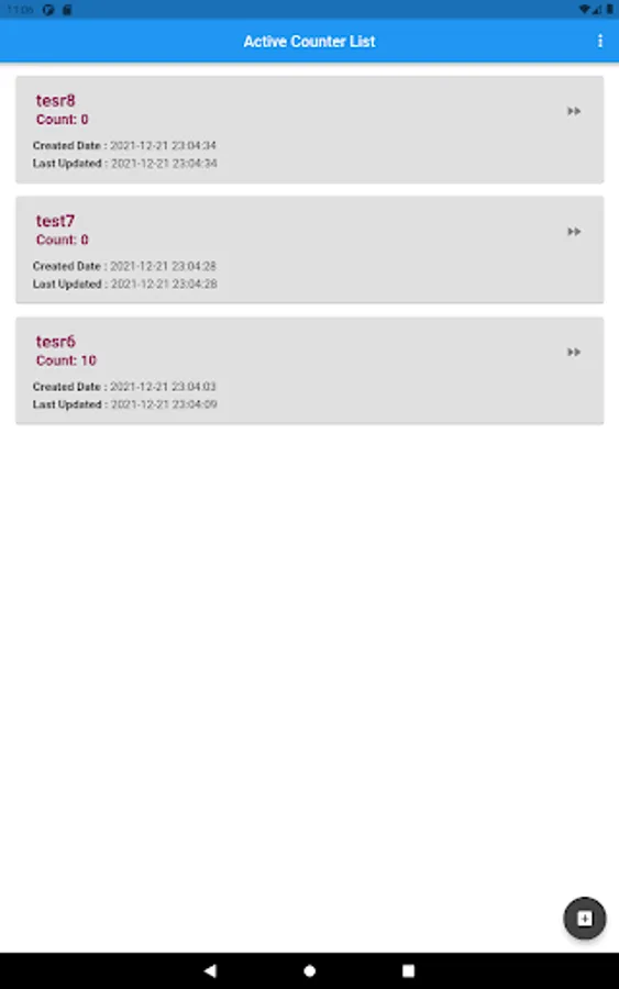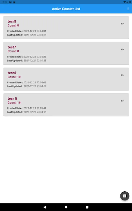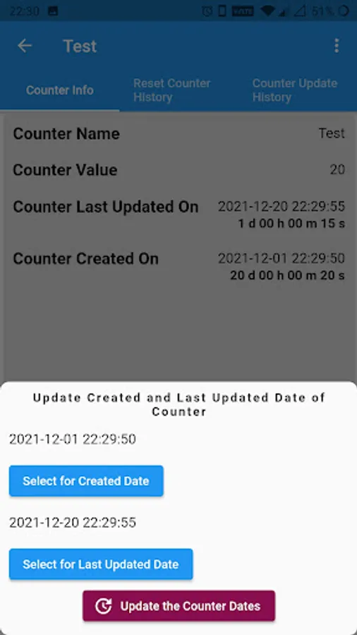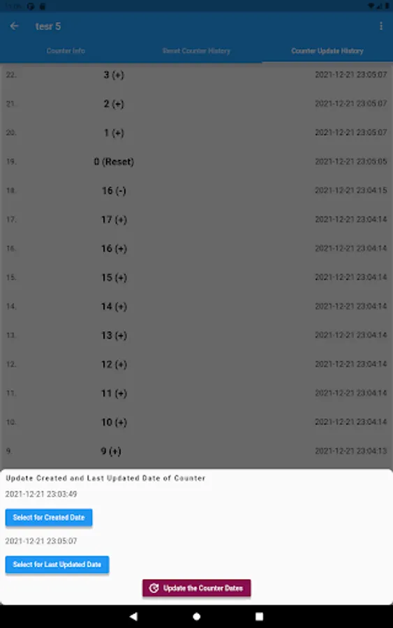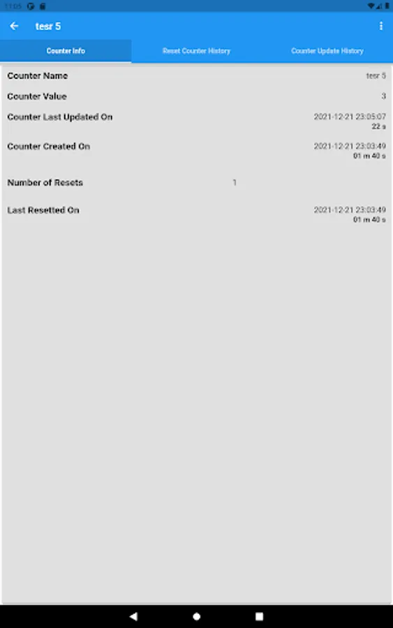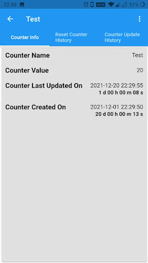 - Overview of all active counters - It shows Counter Name, Value, Started date, and Last Updated Date