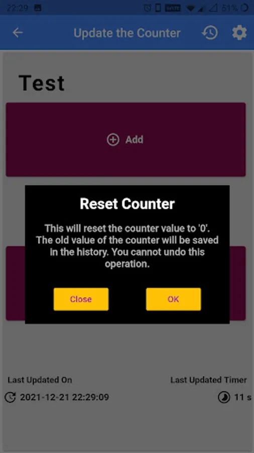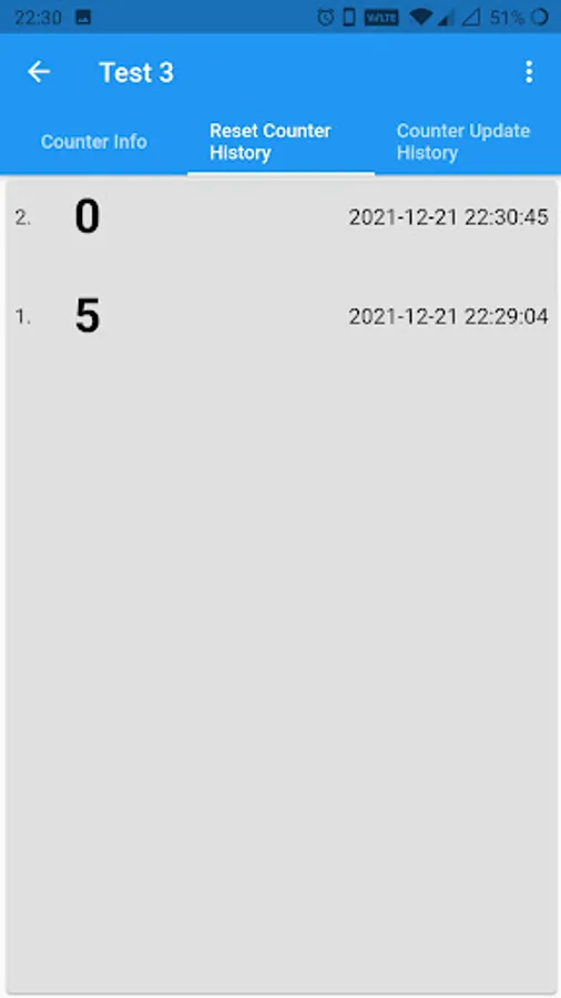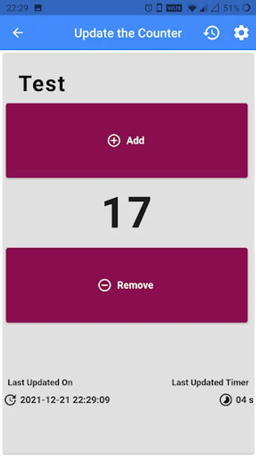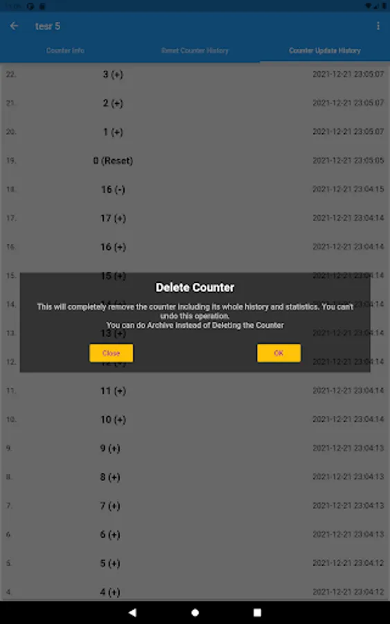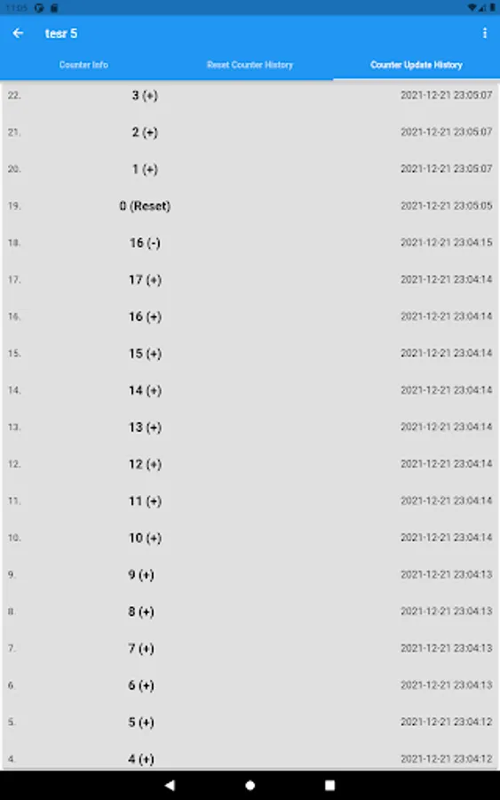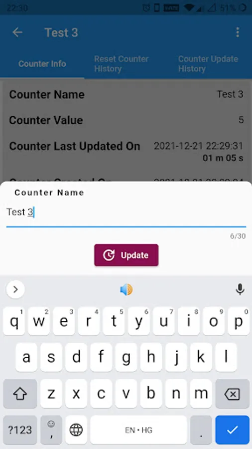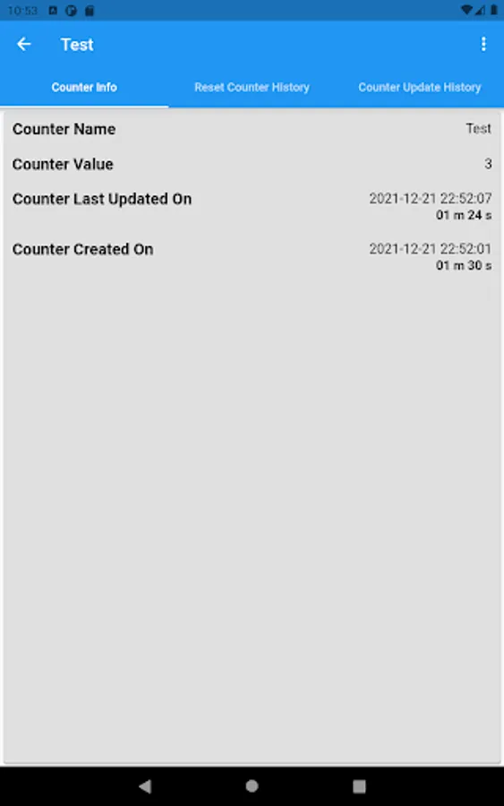 - Overview of all active counters - It shows Counter Name, Value, Started date, and Last Updated Date