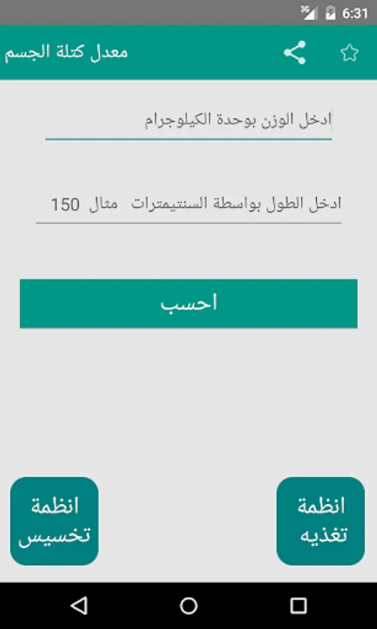 حاسبة السعرات الحراريه في الجسم ونسبه كتلة الدهون في الجسم صممت لكي تحسب لك كتلة الدهون في الجسم و تعطيك المؤشر ايضا