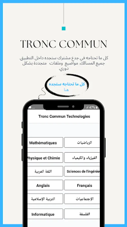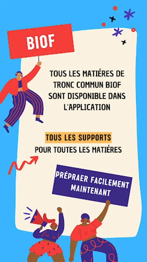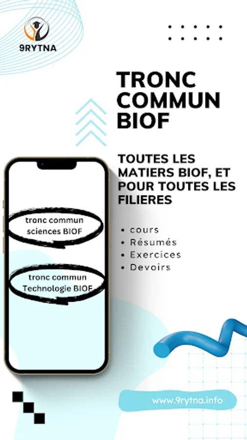 The application contains Courses, summaries and exercises and exams intended for common core high school students (BIOF) to prepare them well.
