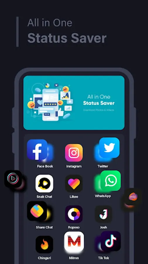 Easy to download any social media image and video status, just get this app and get all the photos and videos, and repost you downloaded any photo and video status & Enjoy It.