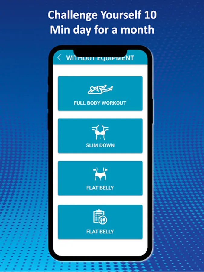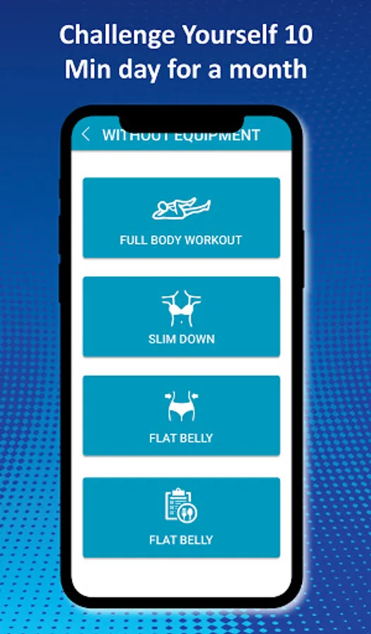 This app having two categories, with Equipment & without Equipment: