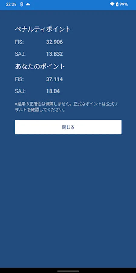 It used to take a lot of time to calculate FIS points and SAJ points, but if you use this app, you can calculate the points you earn in about 1 minute.