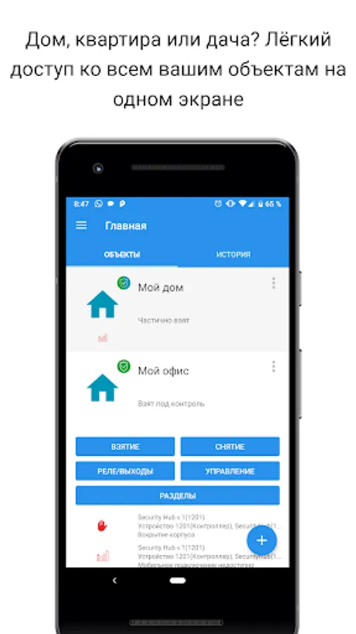 The application provides continuous monitoring of the protected premises. You are at home, even when not at home.