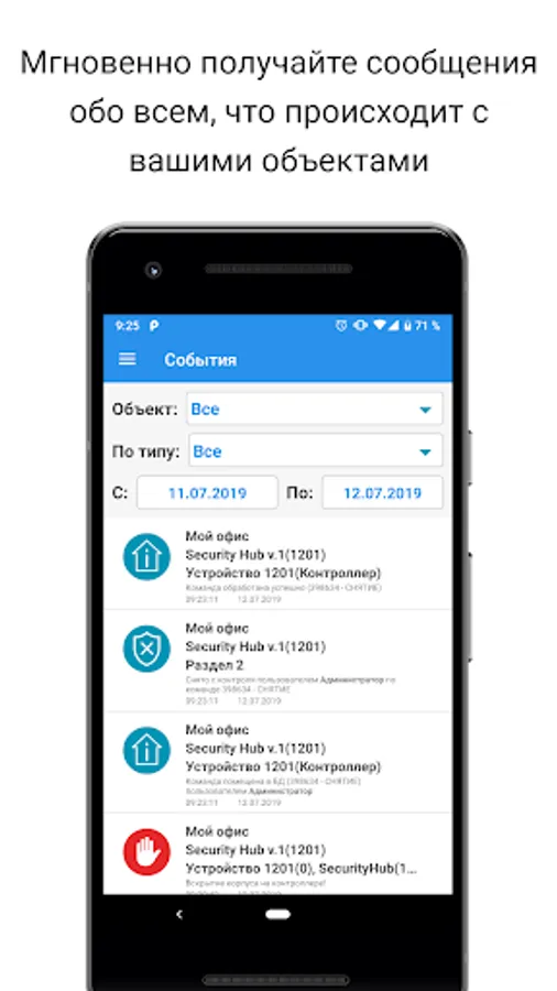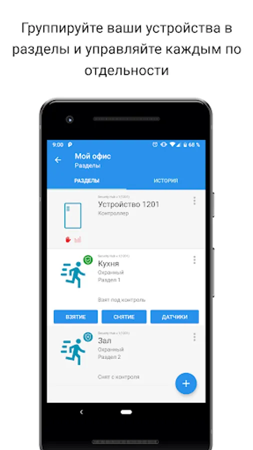 Mobile application KSB created to configure and control the fire alarm system from the company Integrated security systems.