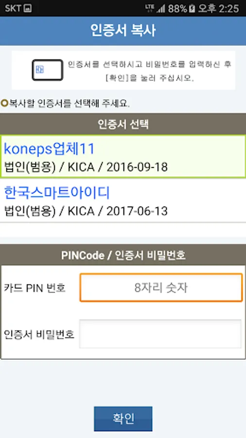 Through NFC communication provides the ability to copy the certificate in the smart card.