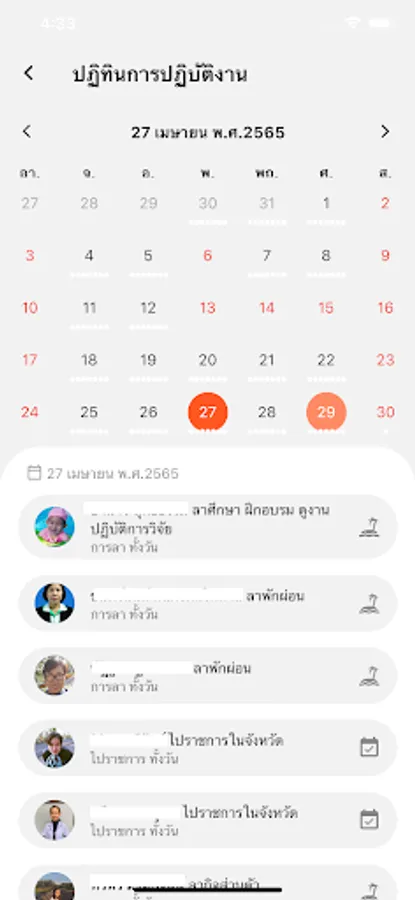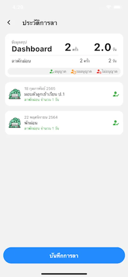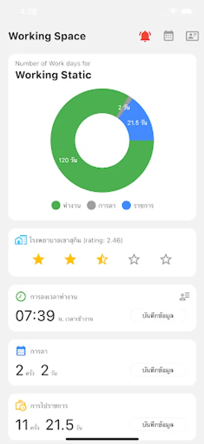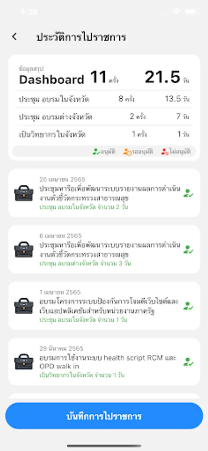 - Recording time in and out of work with the concept of micro-location Able to leave or request approval to go to government through the system