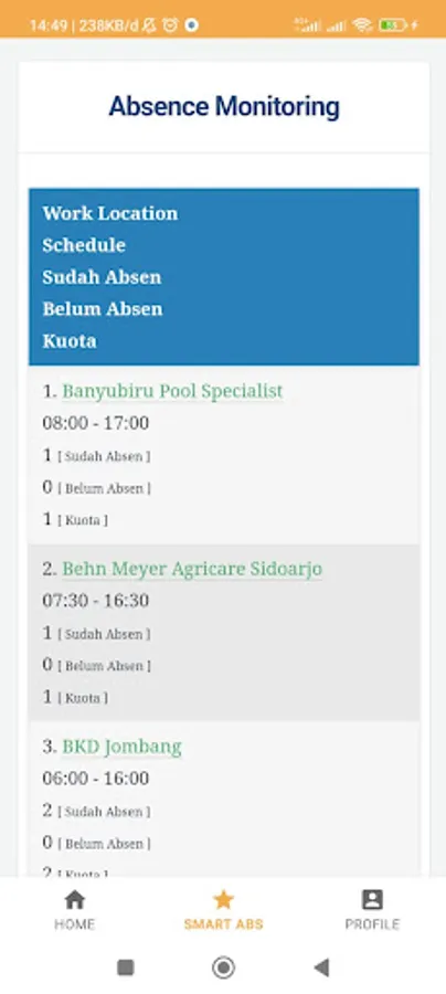 Android-based application used by Area Supervisors to monitor employee work results in the field. has features: photo storage, absence monitoring, and synchronization