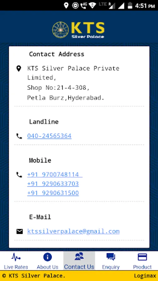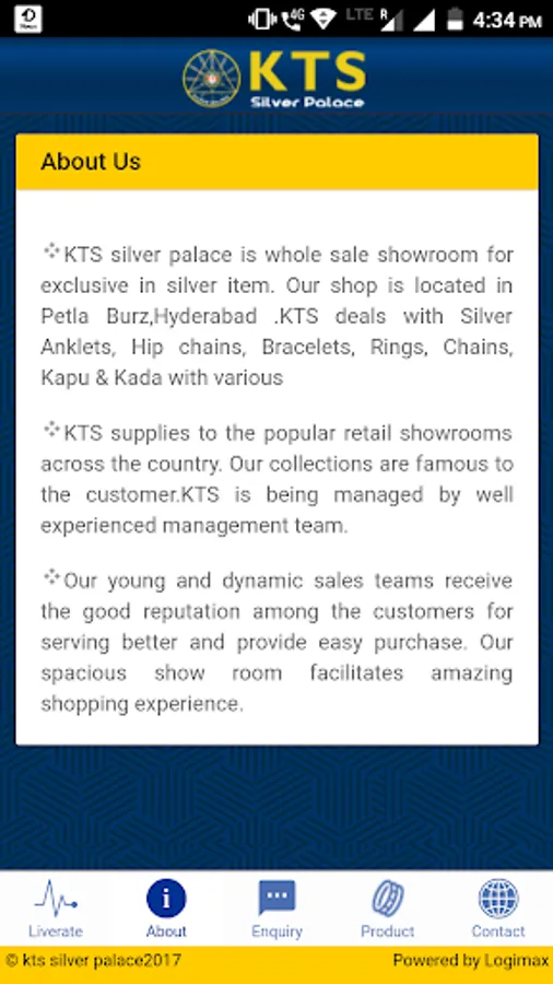 KTS silver palace is whole sale showroom for exclusive in silver item. Our shop is located in Petla Burz, Hyderabad .KTS deals with Silver Anklets, Hip chains, Bracelets, Rings, Chains, Kapu & Kada with various ranges of weights & size.KTS supplies to the popular retail showrooms across the country. Our collections are famous to the customer.KTS is being managed by well experienced management team.