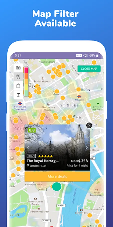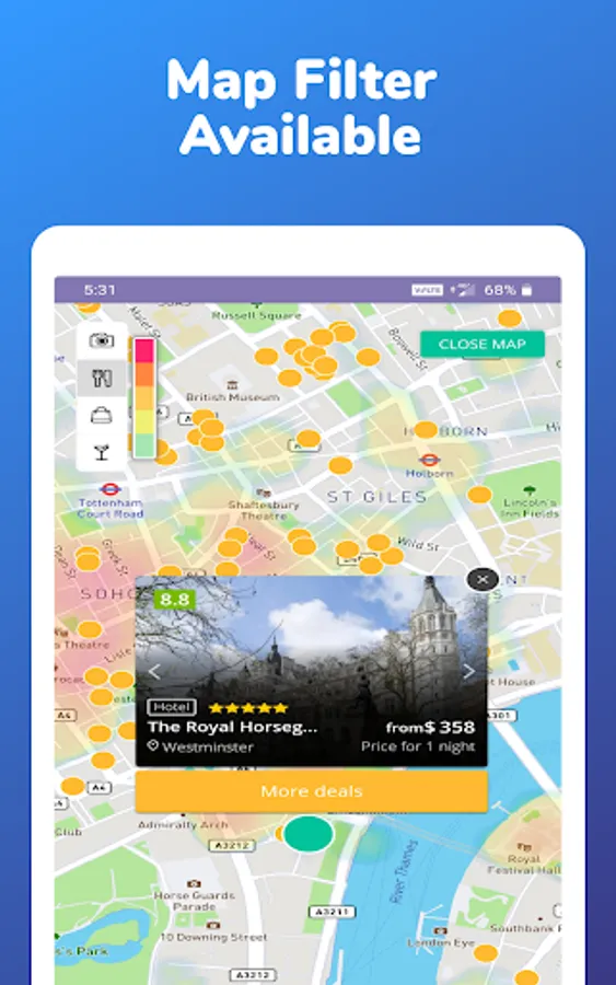 This hotel finder app provides hotels reward programs like Worldwide-Wyndham Rewards, Extended Stay America Coupons, Starwood Preferred Guest(SPG), IHG Rewards Club, World Of Hyatt, Marriott Bonvoy, Radisson Rewards, Hilton Honors, Le Club AccorHotels, etc.