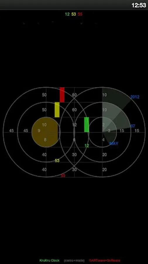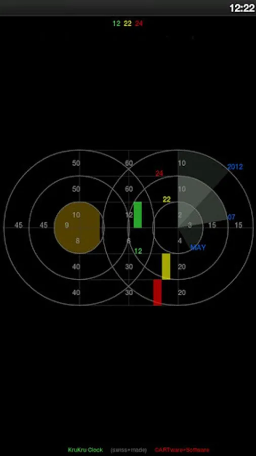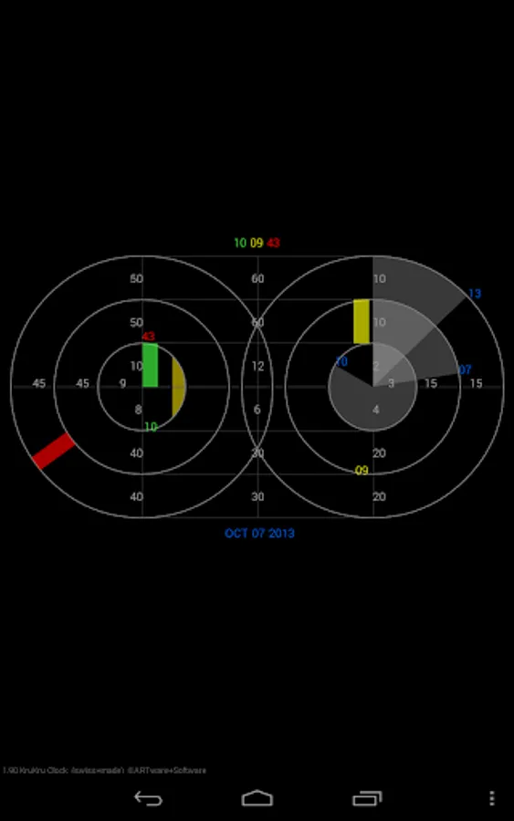 For more settings like AM/PM time-format, background color, size and many more options one can upgrade from the free version to the ARTware Clock Collection that also includes many more clocks: (Astro, GeoMetric, Graph, MonDriaNoid, DeKonstr, KruKru, MulTi, Grid, ReGular, 2Timer, TimeMachine, HashTag and OnTime).