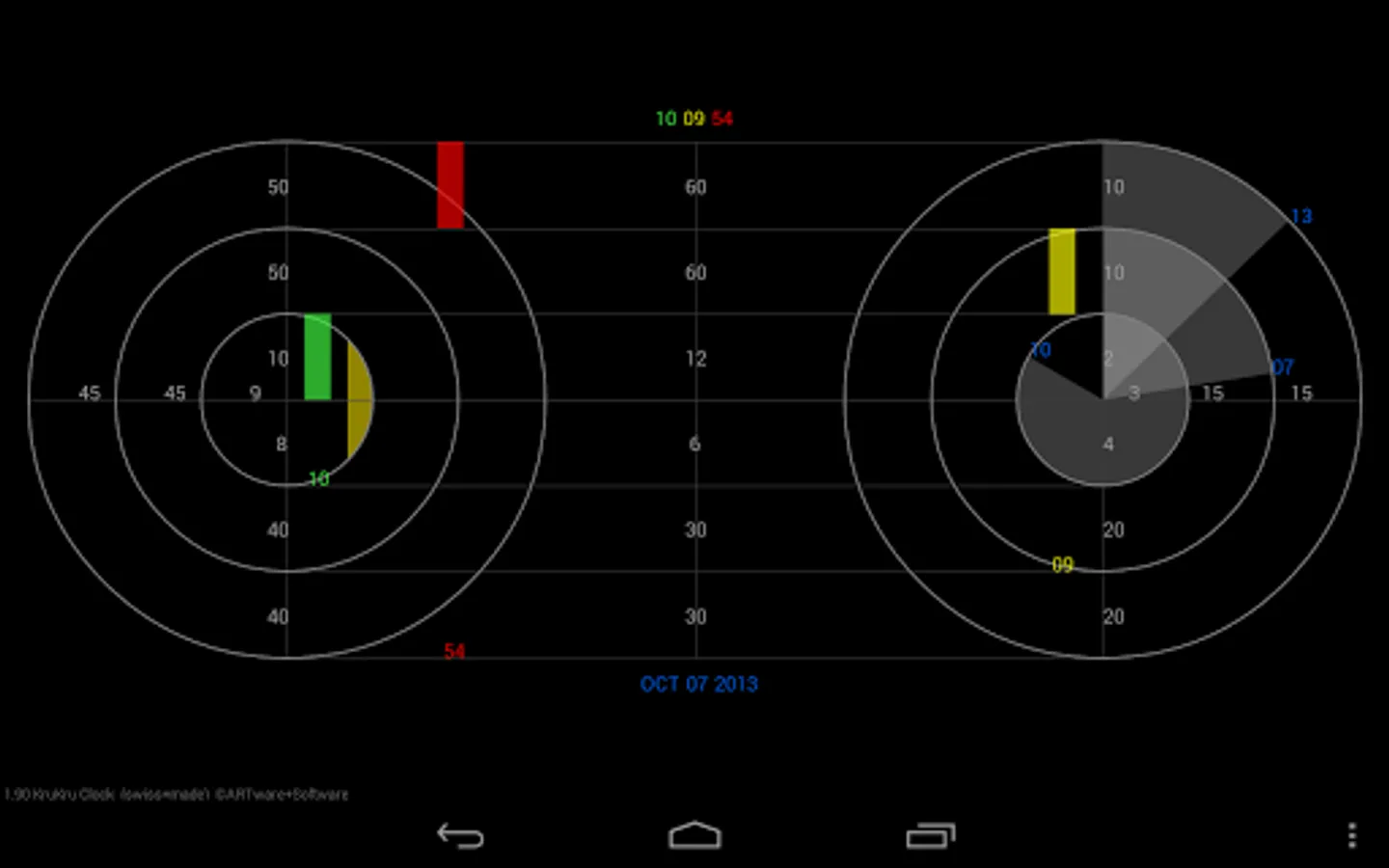 The Free KruKru Clock Live Wallpaper (LWP) is a very small program that runs well on Android 2.1+ devices with Live Wallpaper. This and all other ARTware apps run well on Google's Nexus tablets and the Nexus 4 and Nexus phones.