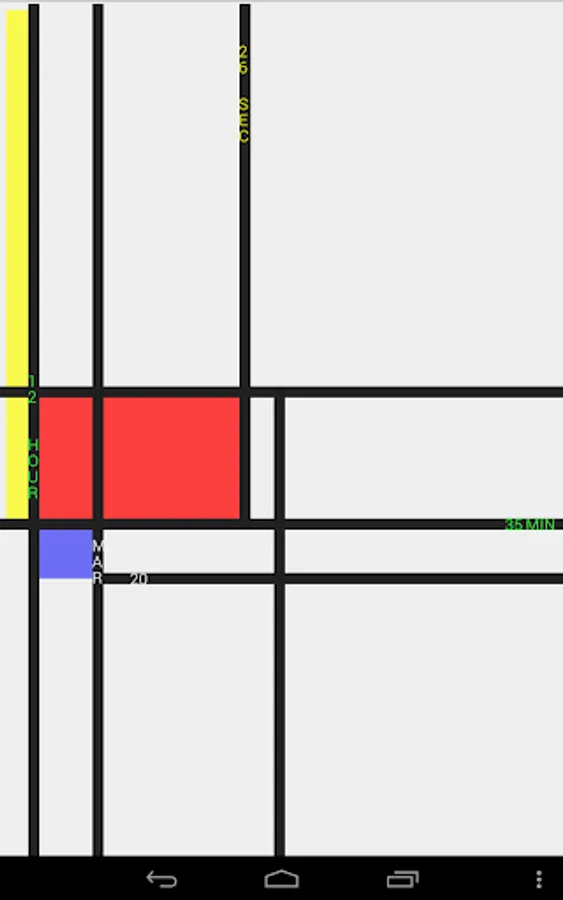 ARTware MonDriaNoid is a Free Live Wallpaper "Clock", simulating the abstract art of the famous modern Dutch artist with a similar name Piet Mondrian from the De Stijl movement. MonDriaNoid is a time driven art pieces that shows the time and date in an unusual fashion.
