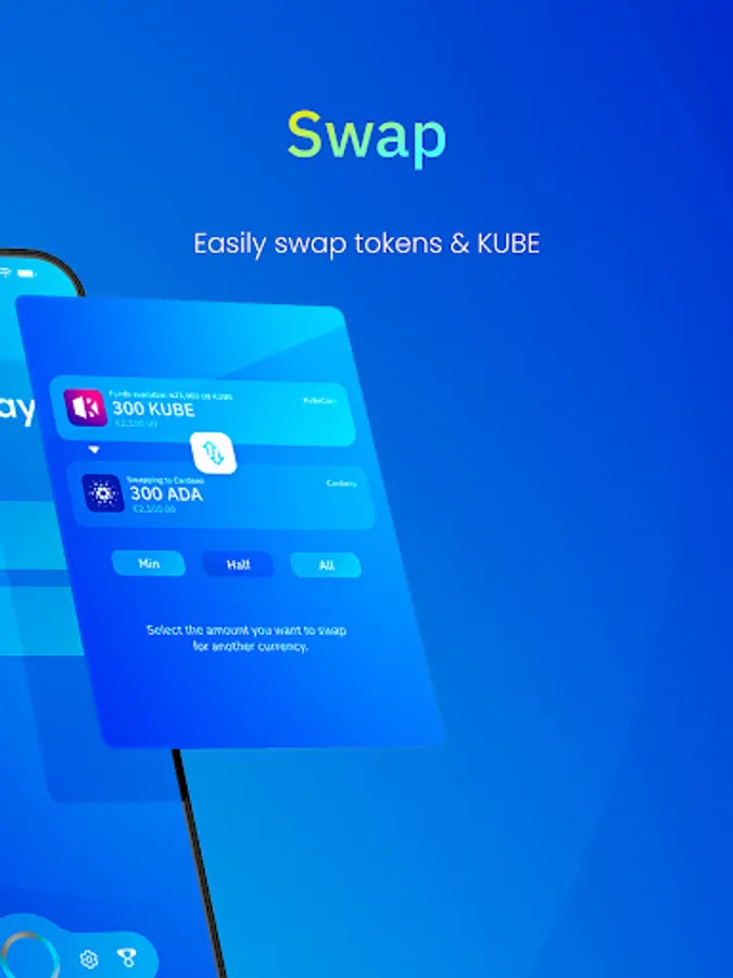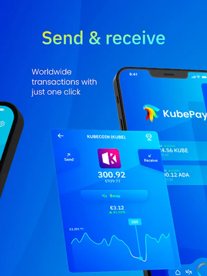 Interact with your favorite tokens in just one click: store, send, receive, buy, sell, swap, stake and trade. Featuring KubeCoin (KUBE), Cardano (ADA), Revuto (REVU), World Mobile Token (WMT), MELD and ADAX, KubePay is the all-in-one app for your blockchain and Web3 transactions.