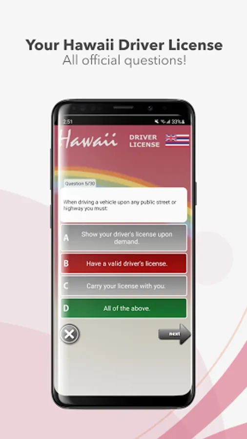 Need a driver's license in Hawaii? With this Hawaii Driver's License you can study anytime and any place for your written test.