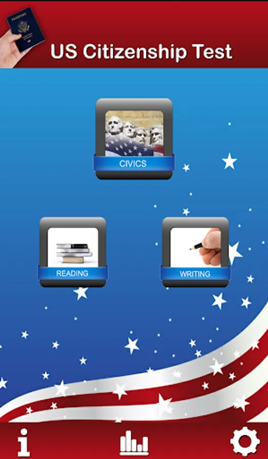 The statistics page shows how many test you did and how you've done so far. All this makes learning for your US naturalization test fun and challenging!