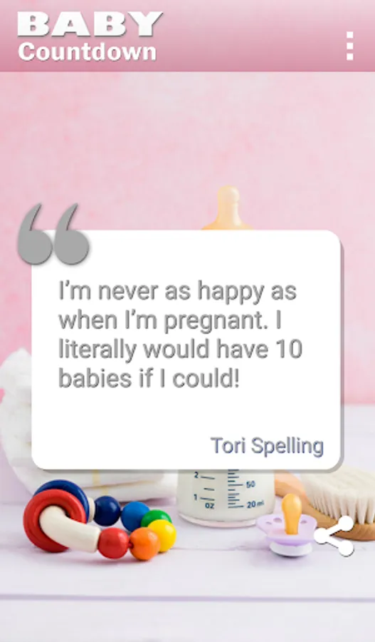 - Share the daily quotes, your pregnancy progress and countdown with your friends