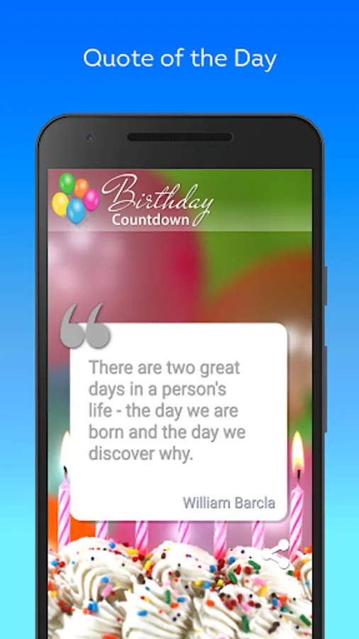 Discover the "Birthday Quote of the day" feature, where you can read and share inspiring quotes that celebrate the joy of birthdays. Let these meaningful words uplift your spirits and add an extra layer of happiness to your countdown journey.