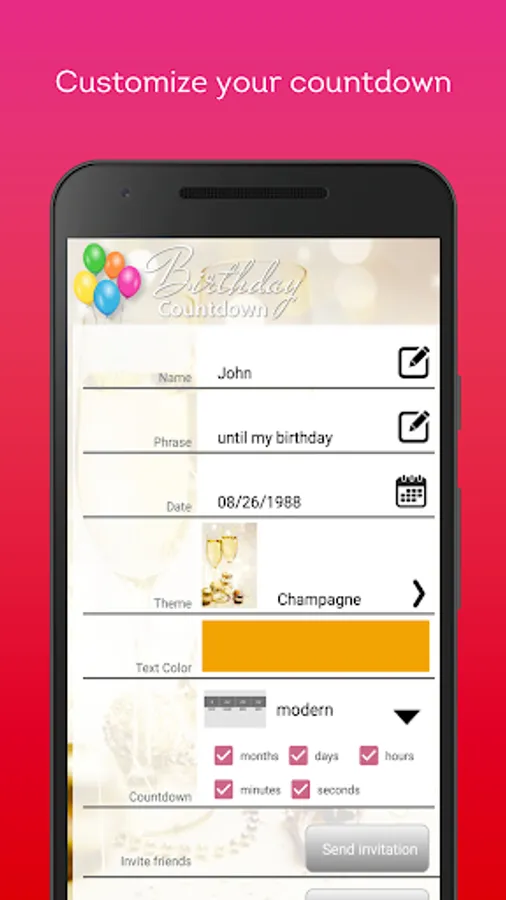 Add a touch of style and flair to your countdown with a variety of themes to choose from. Each theme is carefully crafted to enhance your birthday countdown experience, reflecting your unique taste and personality.