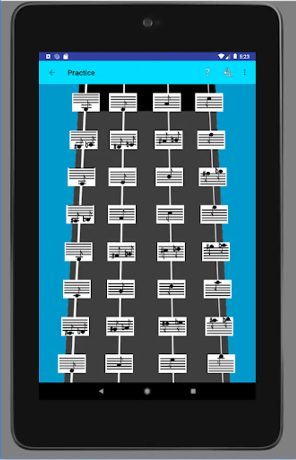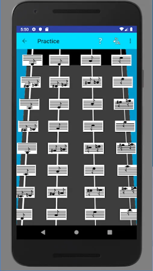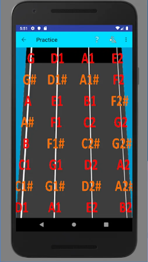 In mode "Practice" you can learn were the notes are placed on the violin fingerboard. Get to know the sound of notes by pressing individual notes on the fingerboard. Play melodies by controlling the length of the sound. Control the length of sound by releasing the note. When the note is released it stops sounding. Play chords using multiple fingers. If you do not release the note it will stop sounding after some time.
