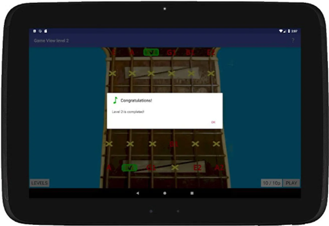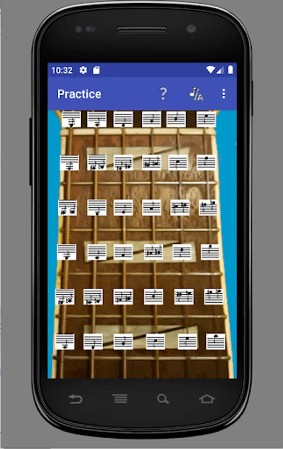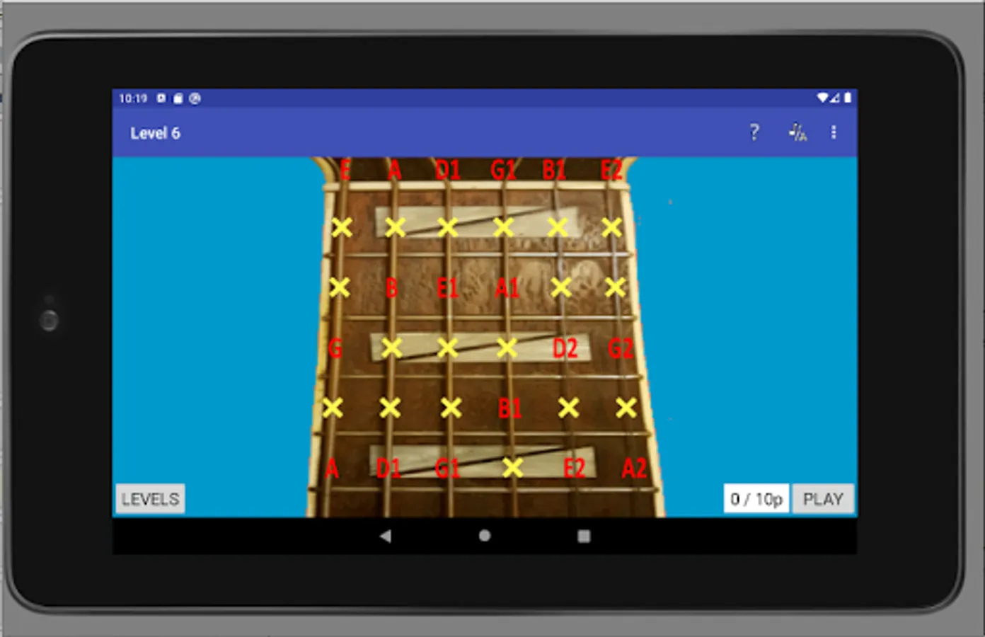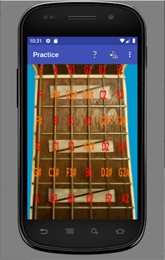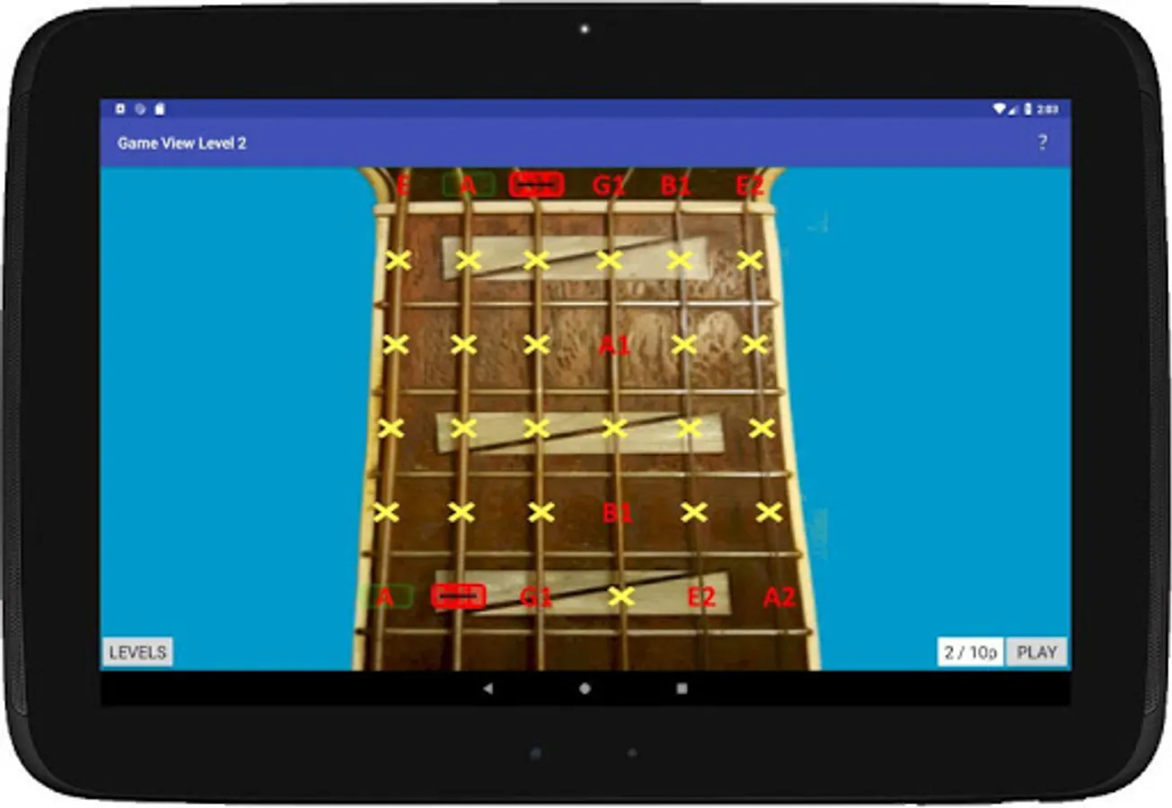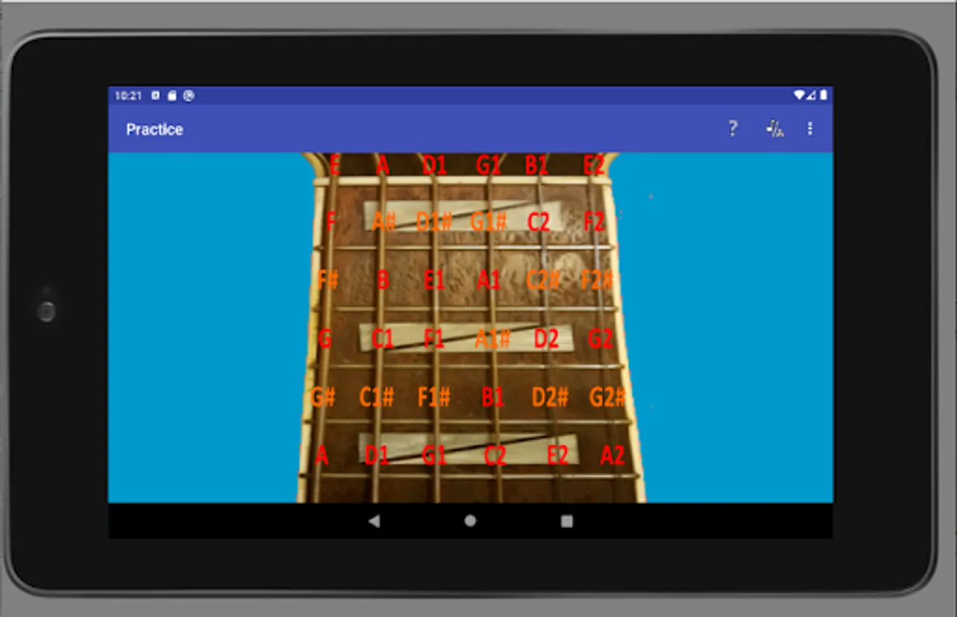In section "PRACTICE" you can learn where the notes are situated on the guitar fretboard. You can play individual tones or chords. Try to play melodies!