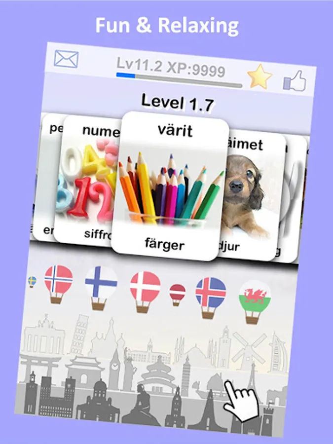 --- Learning Languages in this app --- Swedish, Norwegian, Finnish, Danish, Latvian, Icelandic, Welsh--- Fun and Relaxing Learning Experience --- Let’s learn like playing games!This app adopts scientific methods, real-life teaching experience and game elements to raise your interests and enable you to learn effectively.--- Nice Pictures with Voice, Various Learning Modes --- Look at the beautiful cards, listen to the voice and try to speak! Learn vocabulary effectively in an enjoyable way! Various learning modes:・Detail Mode: Enjoy learning from the pretty paintings・Shuffle Mode: Help to memorize all the cards ・Quiz Mode: Examine your learning--- More than 30 Levels --- Well classifying into different categories from easy to difficult. It allows you to learn step by step:・Greetings, Basic Phrases・Numbers, Colors, Animals・Restaurant, Food, Vegetables, Fruits・Sightseeing, Transportation, Shopping, Hotel・Body, Date, Family, Directions, Weather・Hobbies, Tableware (newly added)・Condiments, Sports, Drinks (newly added)・Tastes, Boutique and more (coming soon)--- Start Your Learning Adventure with the Best App Now! ---Feedback: support.googleplay@lingo-apps.comFacebook: http://www.facebook.com/LingoCardsWeb: http://www.lingo-apps.com