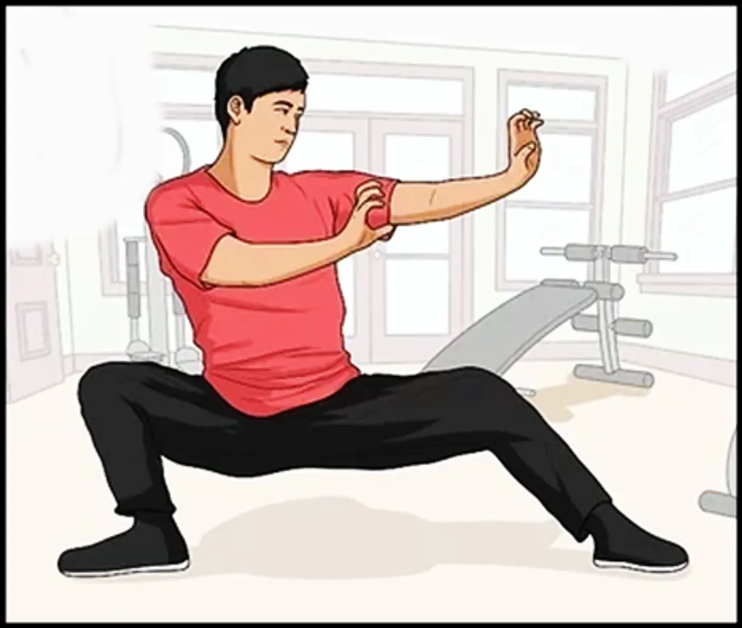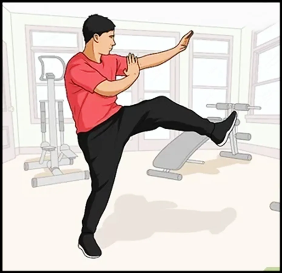 One of the postures to learn martial arts, place the right leg slightly behind and lean on it, then raise the left leg and only rest the tip on the ground.