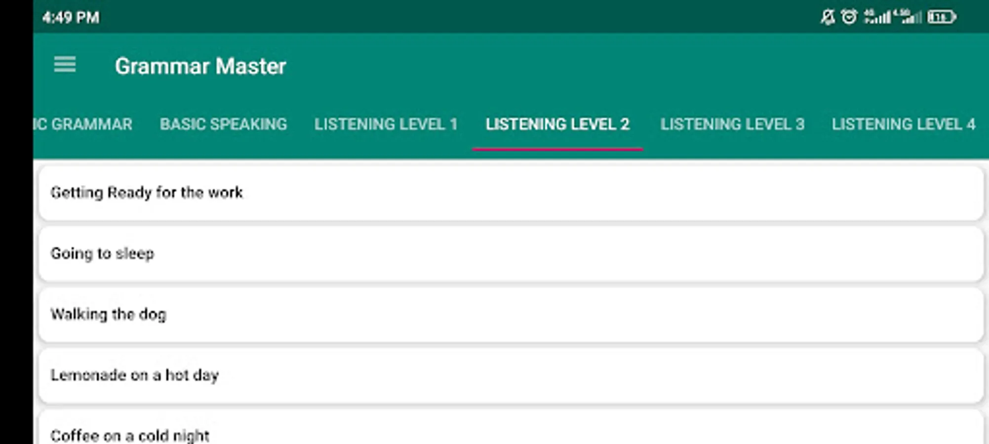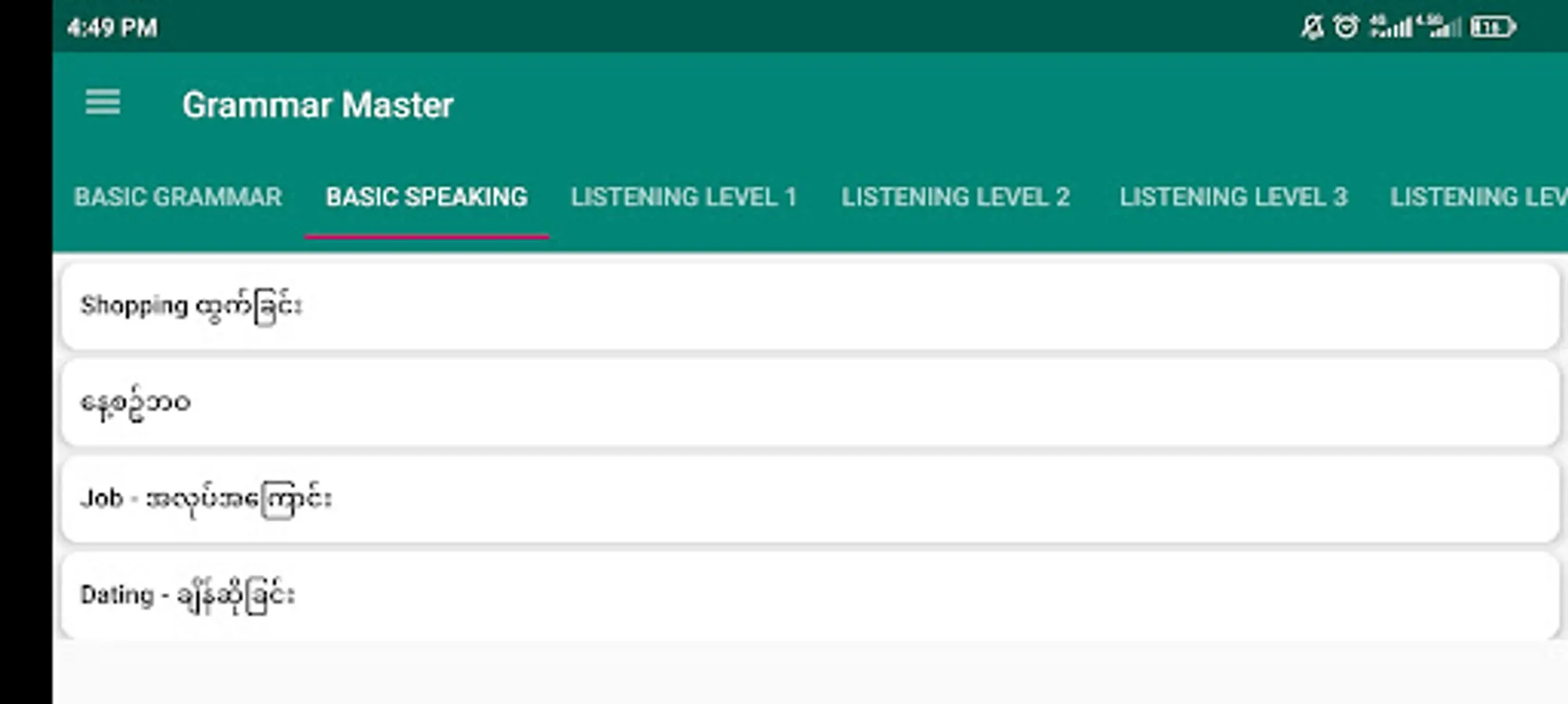 Intermediate Level အဆင့်ထိလေ့လာချင်သူတွေအတွက် စီစဉ်ထားတာဖြစ်ပါတယ်..ဒီ app ထဲမှာပါတဲ့ အသံဖိုင်အားလုံးကို offline နားဆင်နိုင်ပါတယ်.